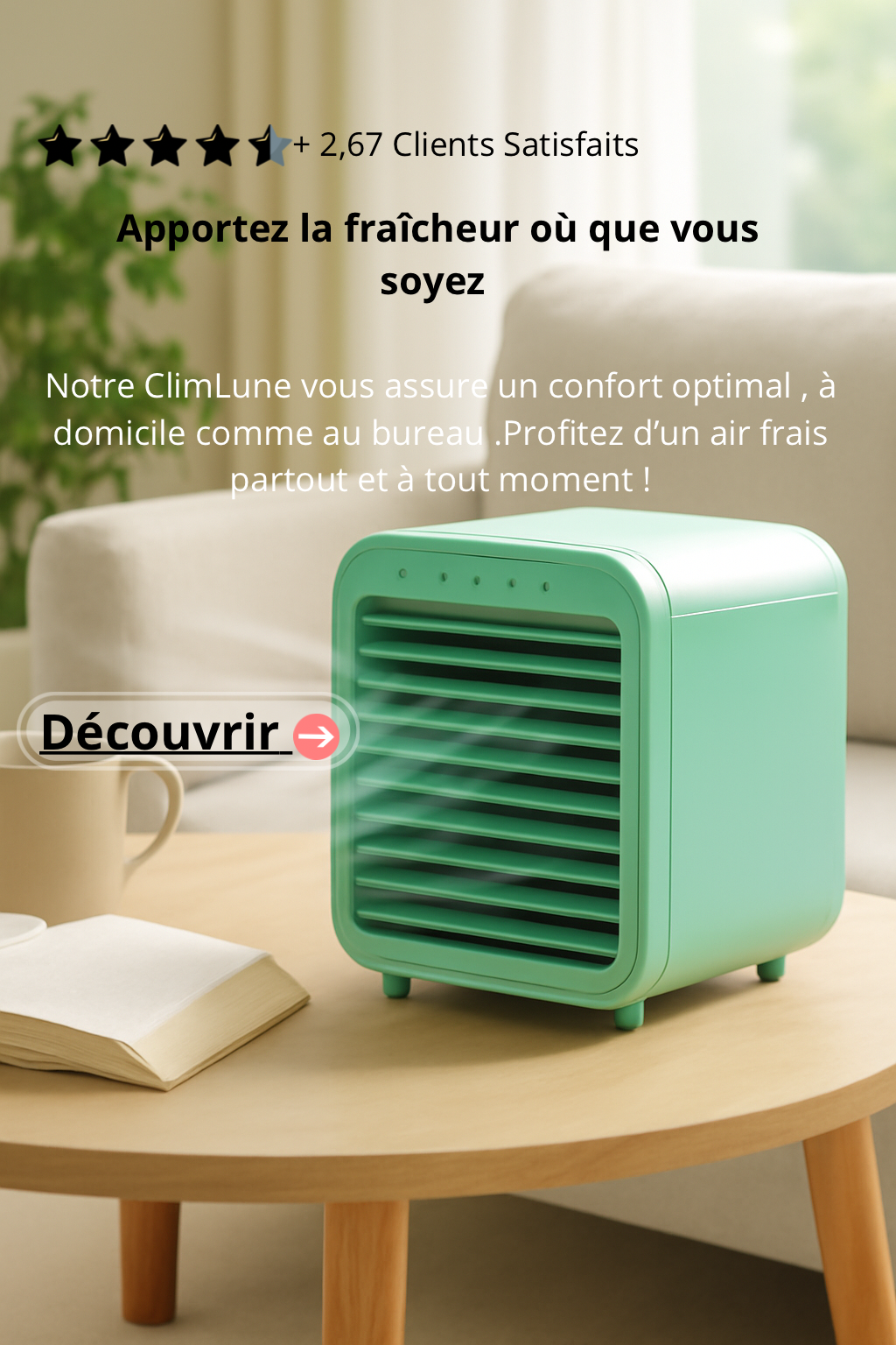 Offrez-vous un confort thermique optimal avec notre mini climatiseur performant. Conçu pour allier compacité et efficacité, il assure une diffusion rapide d’air frais, garantissant un environnement agréable et maîtrisé en toutes circonstances.