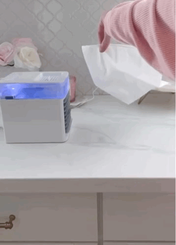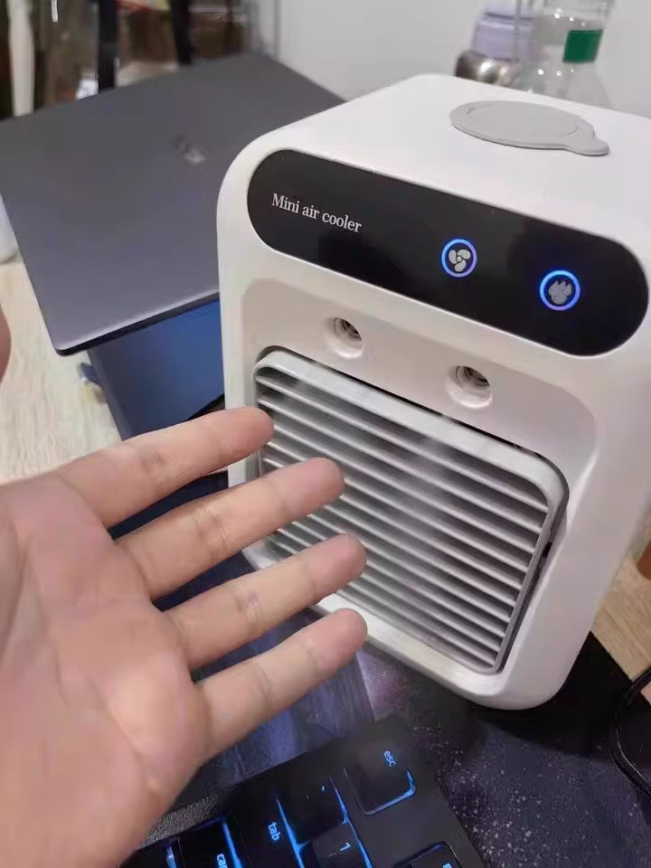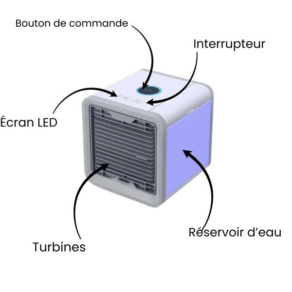 Le mini climatiseur utilise un système de refroidissement par évaporation et un ventilateur intégré pour diffuser de l’air frais rapidement. Il suffit de remplir le réservoir d’eau et d’allumer l’appareil pour profiter d’une fraîcheur immédiate.